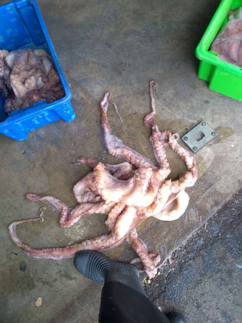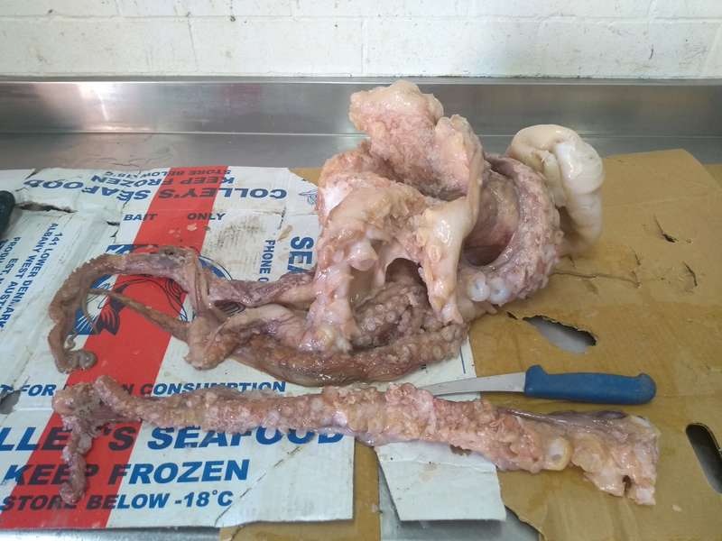 There is a tropical/semi tropical species which we commonly referred to as the Shark bay occie when I was crayfishing. Also referred to as the day occie because they actively hunt during hours of daylight. easily identified while fresh, by the light blotches, particularly on the legs. Fade when frozen. They are a very large, aggressive animal, 10 kg wouldn't surpise me with one of those. PITA around SB, obviously, but also came down towards Kalbarri, working well north would see you in regular contact with them. Enormous appetites, and what they didn't eat, seemd to kill from sheer fright. Catch pots with one in and all the apparently whole crays, dead. Drop one and they could bloody near stand on tippy toes as they shot across the deck, very strong and a real job to wrestle with.