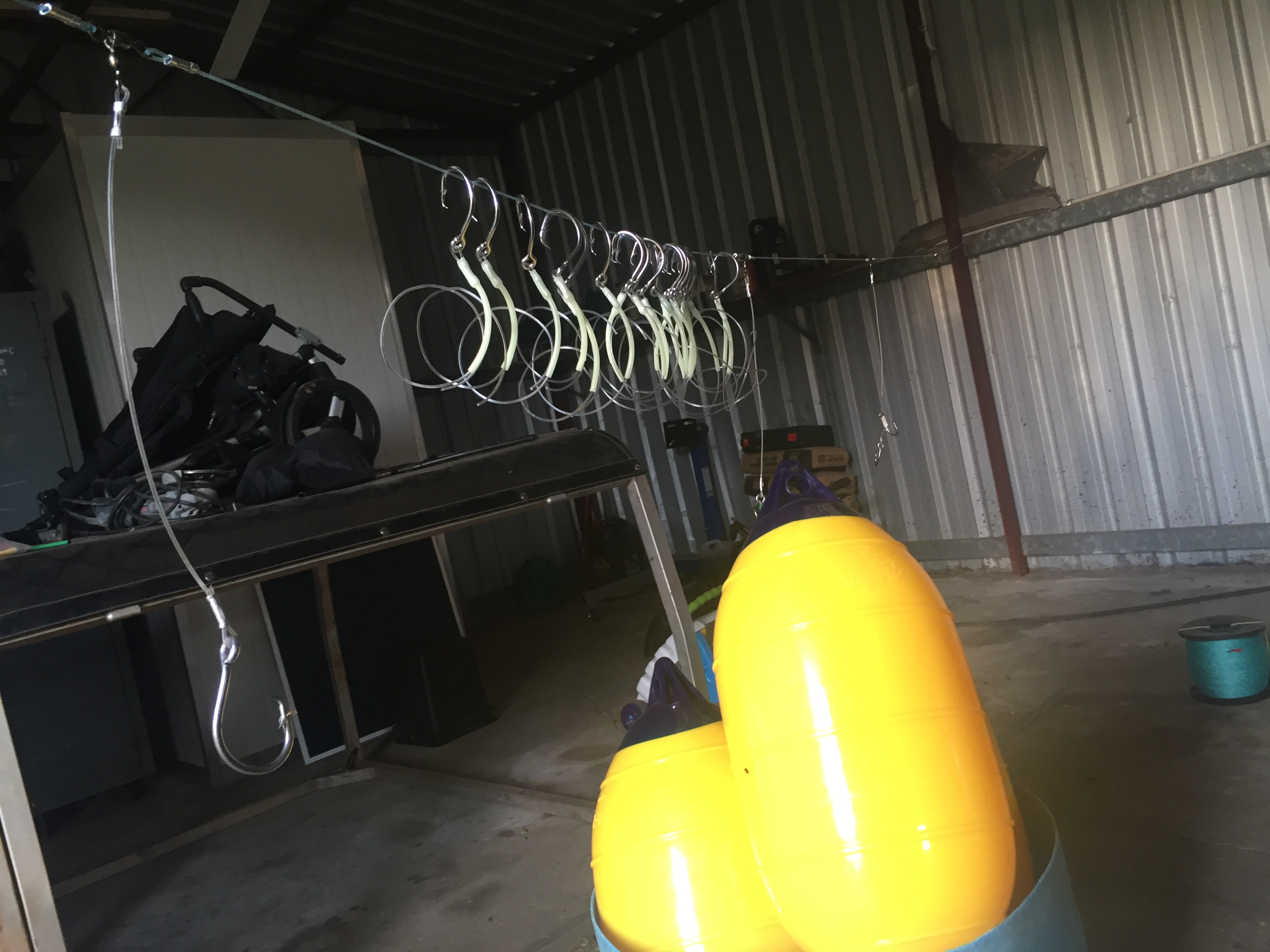 Haha floats are for dads drop lines I don't use them! But hooks are mine, and I'm just straightening some 500lb leader for when the ban lifts, may as well make them now. Just wish that black magic 500lb came in coils and not little 20m rolls. Almost need to pull it with the ute to straighten it. Don't worry only 3 hooks per rig! But sharks just hammer them sometimes and I end up going through 4-5 rigs some trips