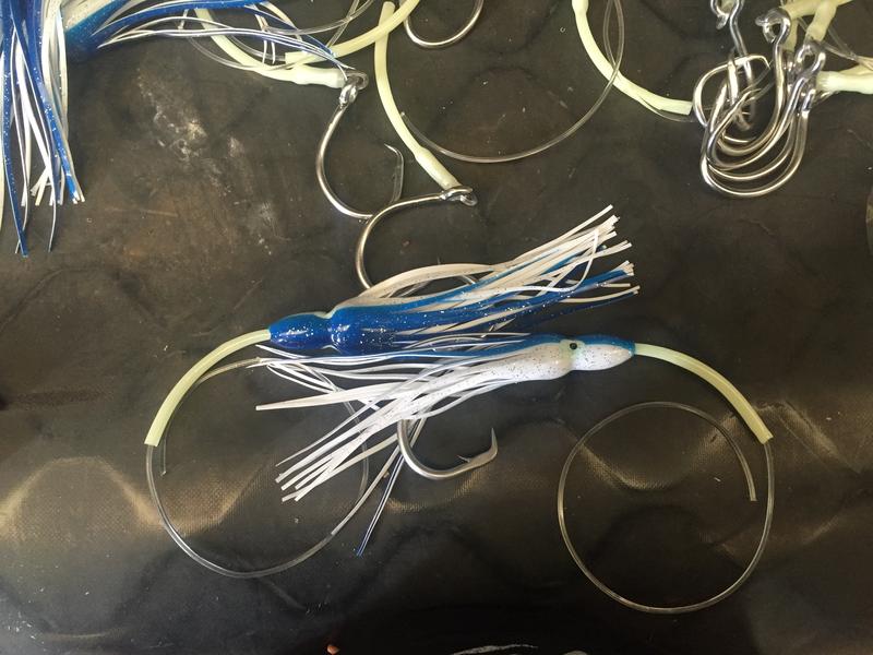 Not long now for west coast. Added some squid skirts.... Will see how they go! Doubt it will make a difference. And the result from 3 sharks having fun! Added a couple more sinkers off to the tip tomorrow to scavenge for more