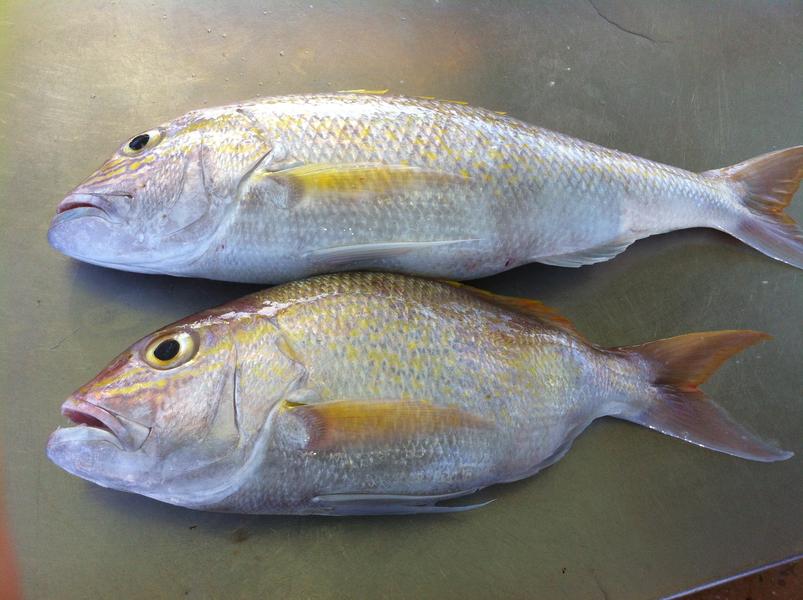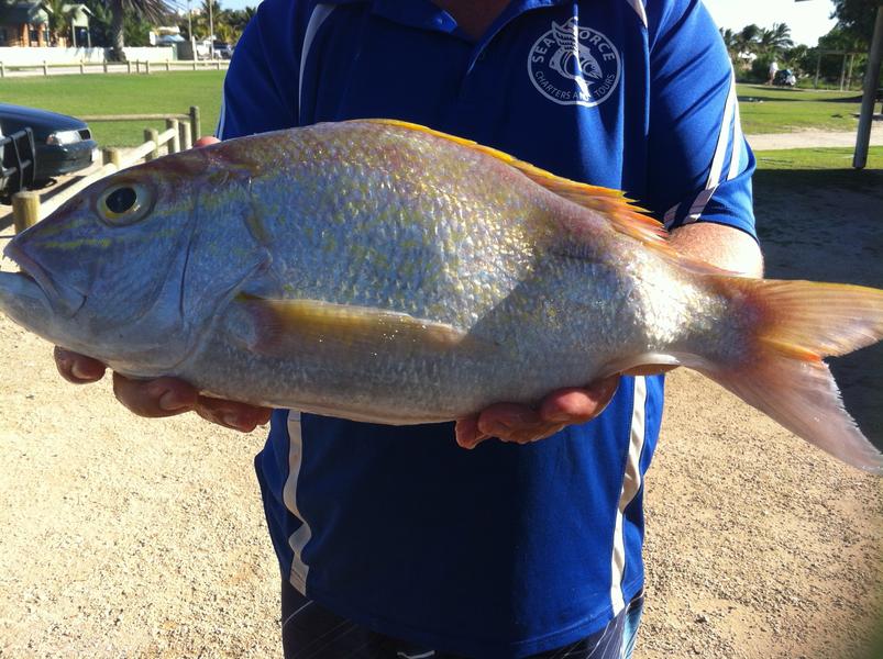 Below is a photo of a Goldband that as far as we can tell must of broken its back early in its life and still managed to survive and grow to quite a good size. Really quite amazing that with all the competion down there fish like this can survive and live long enough to get that big and then be unlucky enough to be caught by us.