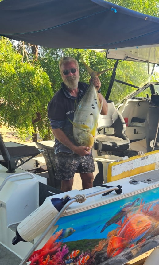Headed down for a day trip to point Samson for something different. did a load of miles getting a few fish out wide. We got a couple of golden trevally and I managed to get my first nanny not a monster but it's a first. Headed in and made 1 last stop to clean the boat down . In 15 minutes we landed Sandys first trout that went 620 , a chinaman of average size , another golden trev and a nice size black