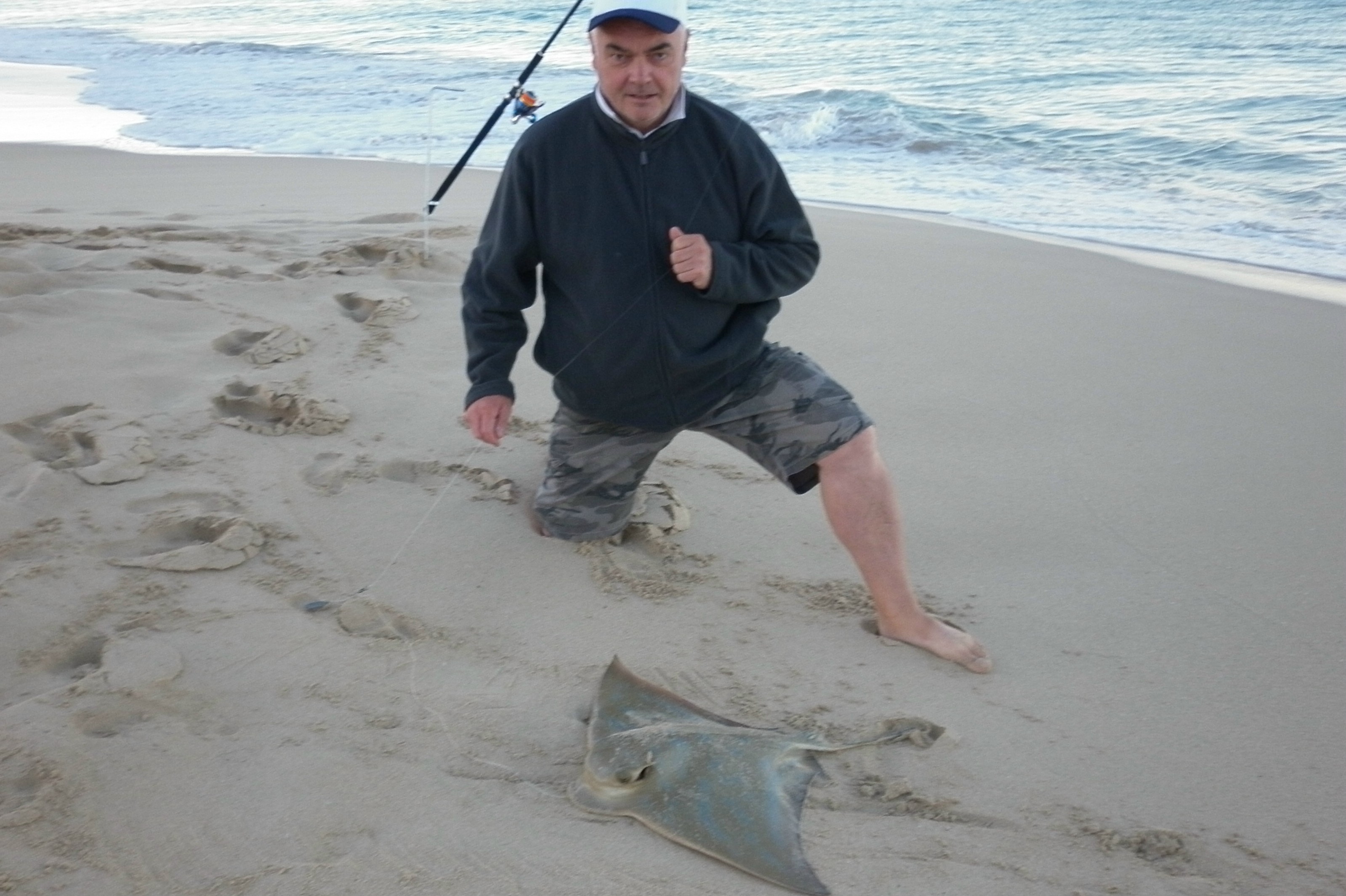 Then i got hit by a big ray after about 20mins it was on the beach and with hooks removed put back in the water