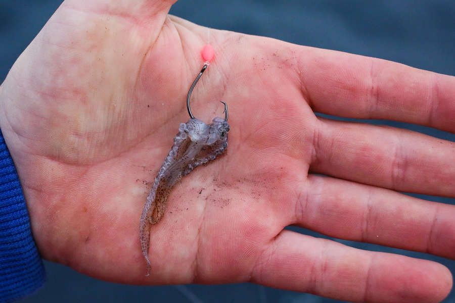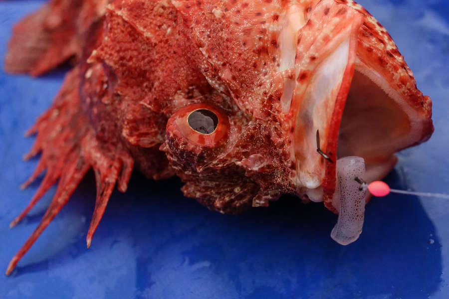 Some people like to anchor but I prefer to fish a slow drift in a pattern covering the area squid are being caught, using the fresh squid tentacles as bait I run a 20lb paternoster with small circle hooks this does a number of things, reduce bi catch of smaller fish, reduce foul hooking's and makes releasing unwanted bycatch like gurnard or grinners easier (they love swallowing the whole bait and hook) 20lb certainly isn't necessary for kgw but with a circle hook there is a very good chance of landing larger fish that might take a liking to the bait. pinkys, dhus etc.