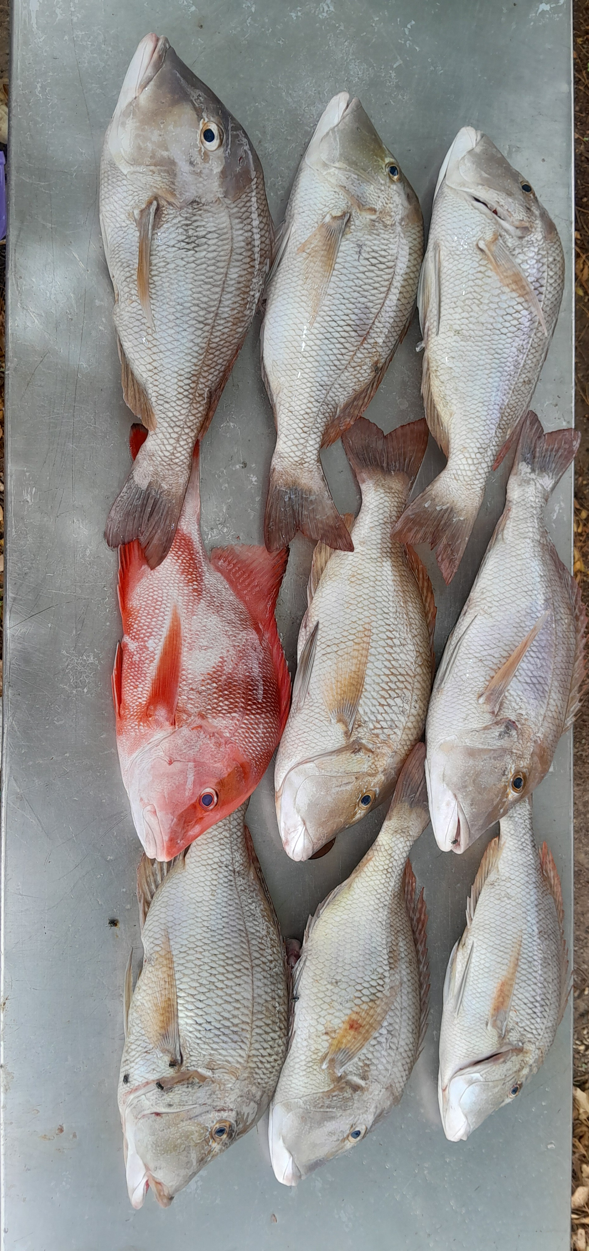 The weather gods turned it on for valentines day up here . We were on the water just after 7 with first lines down by around 8:30. First drift resulted in 6 nice blue lined then moved to another mark close by . 3 short drifts later another 3 blue lined came aboard with Sandy getting a small red which went back healthy then I got a red that went 440 so that was it . Back at the ramp by 11 . All up only about 1 1/2 hours fishing if that .