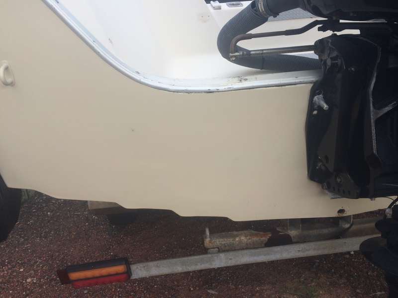 Andys new swifty almost done . All screws out. Chips ect. Deck all done. Everything re sprayed.1 coat of flow coat on deck up to yet( needs another). Underneath all chips gone resprayed. Very itchy , but really happy with outcome turned out mint. Trailer fix up next. Then he is away:):)