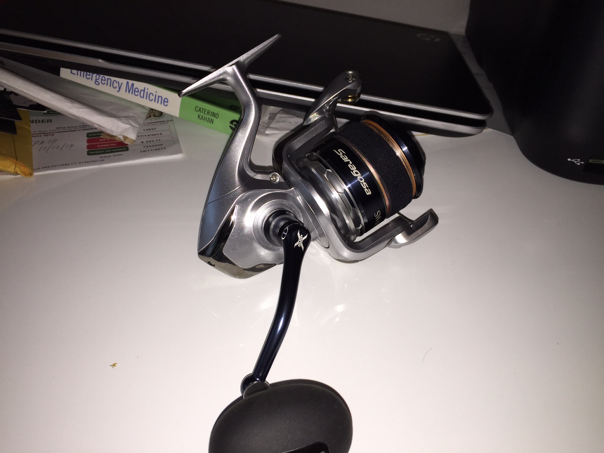 So after all the talk on my other post about finding a rod n reel for the boss. Today I went to blue water to buy some bait and supplies for tomorrow... I thought why not ill java look at the saragosa's.. My trip to the shop ended up me walking out with a 6000 for me to use on my 8 footer for lures and in the process "test out the saragosa's for the missus before I buy her one". All in all they seem a really nice reel pardon the pun. Hopefully a salmon can crank it up for me in the morning.