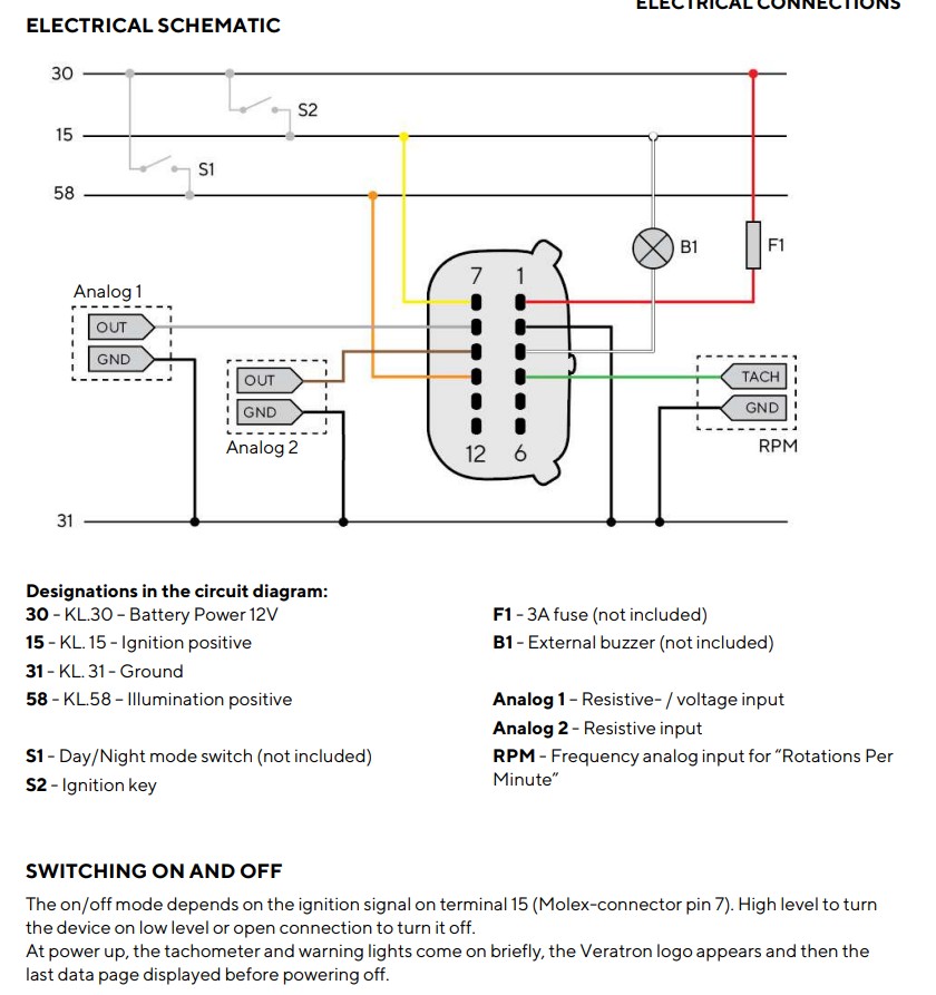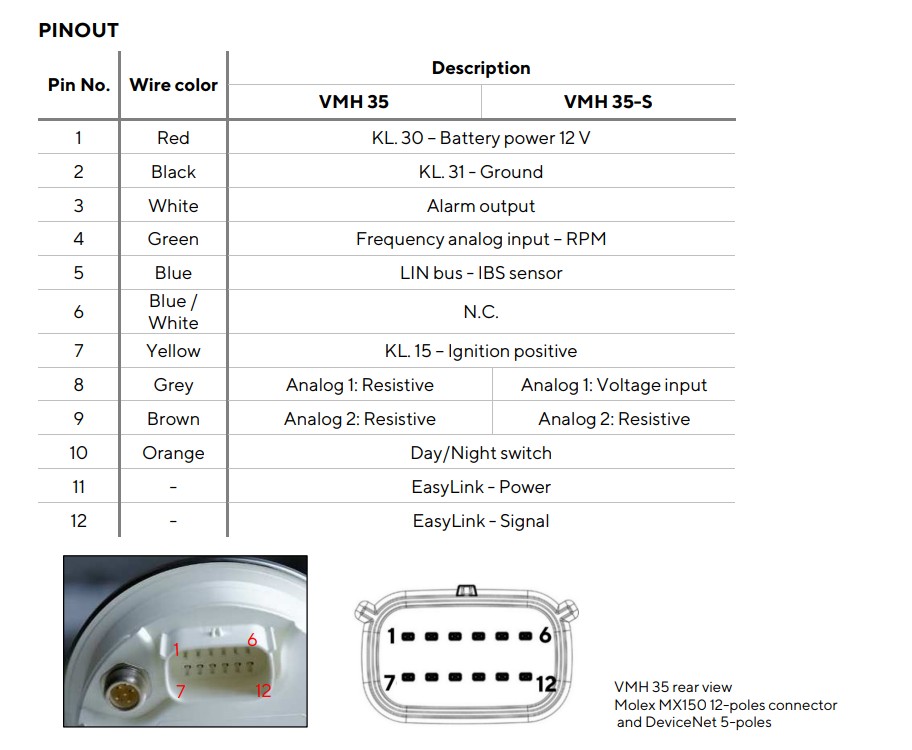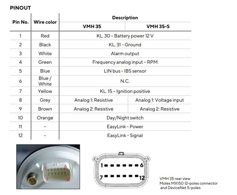 Veratron VMH35 Gauge Wiring