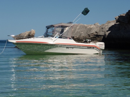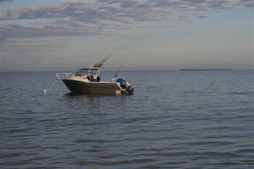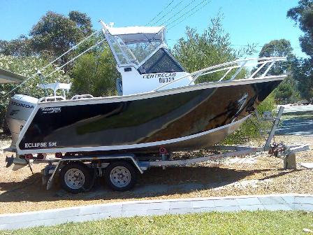 Its a 5.8m ally Trendsetter with 120hp 4 stroke Mariner.We have had it in the family since 1998, but only upgraded to the 4 stroke in 2004. Has served us well in fishing out from Busselton, Perth and Exmouth.