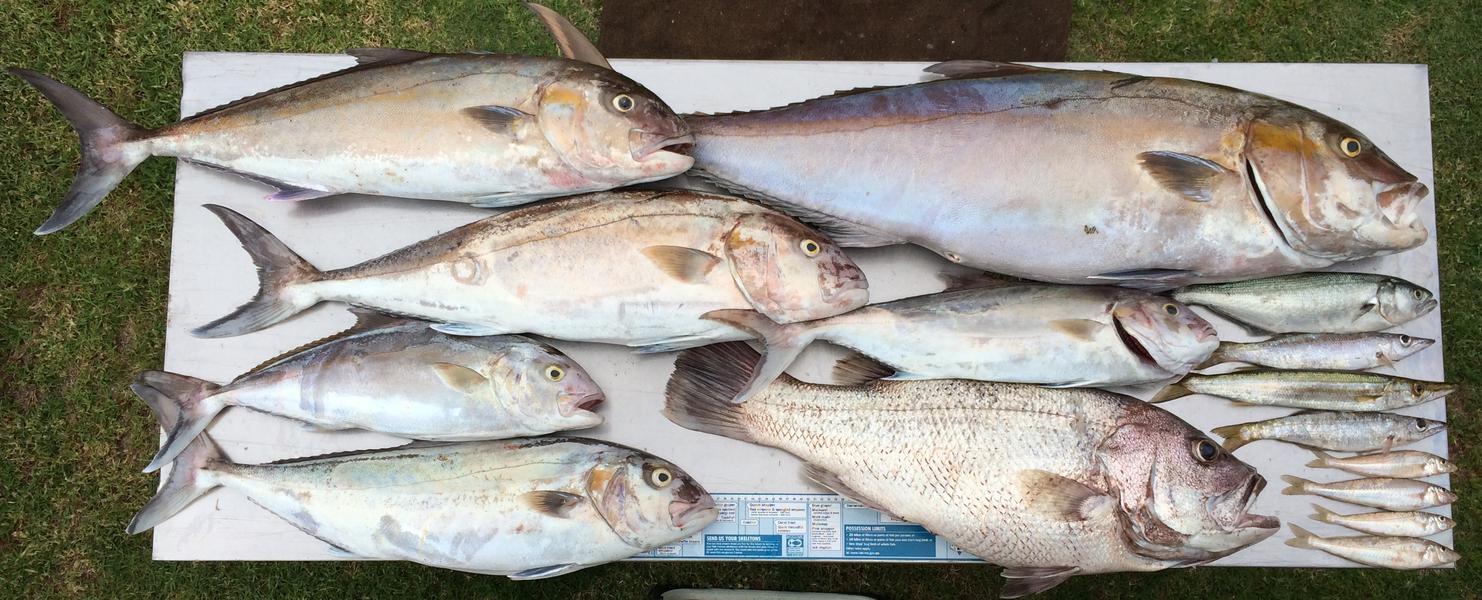 We moved on to try and get a few other species with captures of pike and sand whiting. To top off his day on the water, YPM managed to troll up a tailor and pike around a nearshore reef at the end of the day. No doubt he was likely to score a few points with that bag and he was really tired but keen to get to the weigh in. I think the grin in this photo says it all.