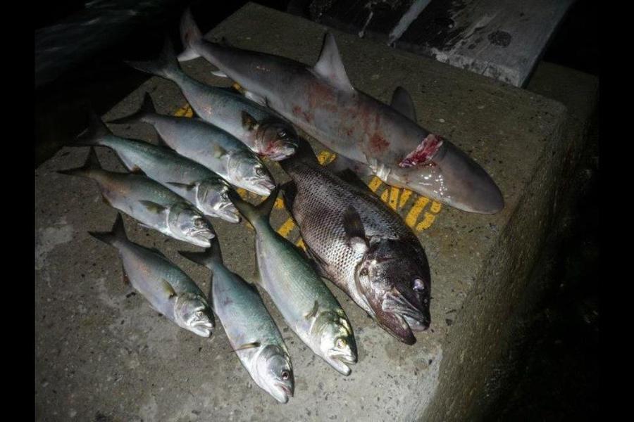 it was my first time leaving from hillarys and we left at around 6pm. being new to this area i didnt have much idea where to go so i checked the charts and found well known lumps. we ended up anchoring in 13m of water and after a slow start of only catching two eels the persistance paid off. we managed to land numerous dhufish (only one size), an undersize pink snapper, a bronze whaler, nice size tailor and a few pike.