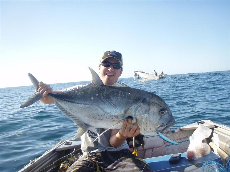 The GT catch was made slightly harder having to reverse the dinghy away from the breakers on the reef at the same time....plus my deckie was too busy unhooking a longtom resulting having to gaff it myself aswell