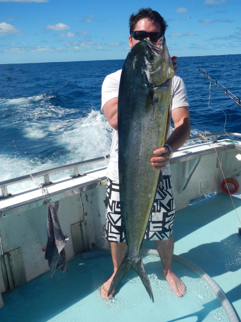 One boat had been trolling for 3 days solid without raising a fish. Our group decided on the 4th day to do some billfish trolling and in 4 hours of trolling we raised 4 marlin, hooked up to 2 and landed a nice dolphinfish (pics attached) with the 1st marlin strike within 14 mins of starting to troll....