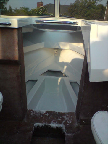 The angled spaces between the fibreglass frame sections on each side of the hull have been filled with bagged foam and a 15mm hardwood marine ply floor has been installed. (the floor has been fully glassed on both sides prior to installation to ensure long service life)