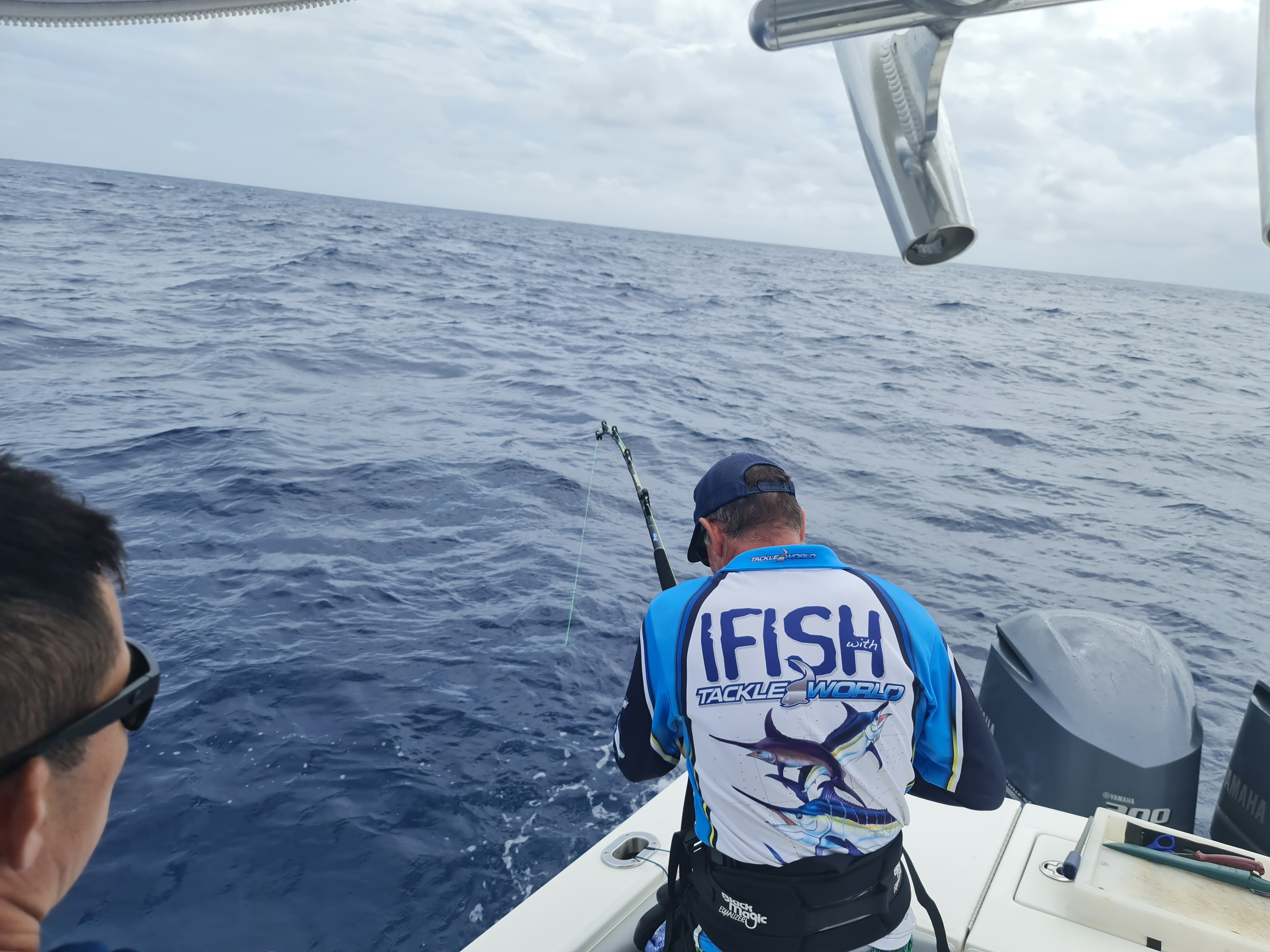 Run out was good, hit one of the FADS for a quick dolly, plenty there but they were pretty shy, but Daz showed us a little trick and we got one on stick bait. Then headed out to the warm water.