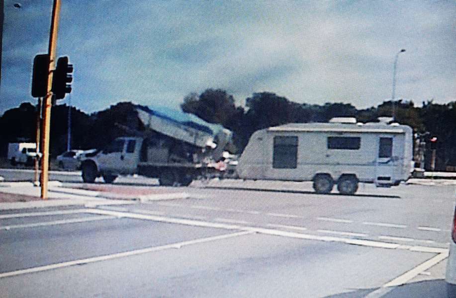My wife saw this a couple of weeks ago before we went away and was wondering if this is a legal way to transport a boat when towing a caravan.