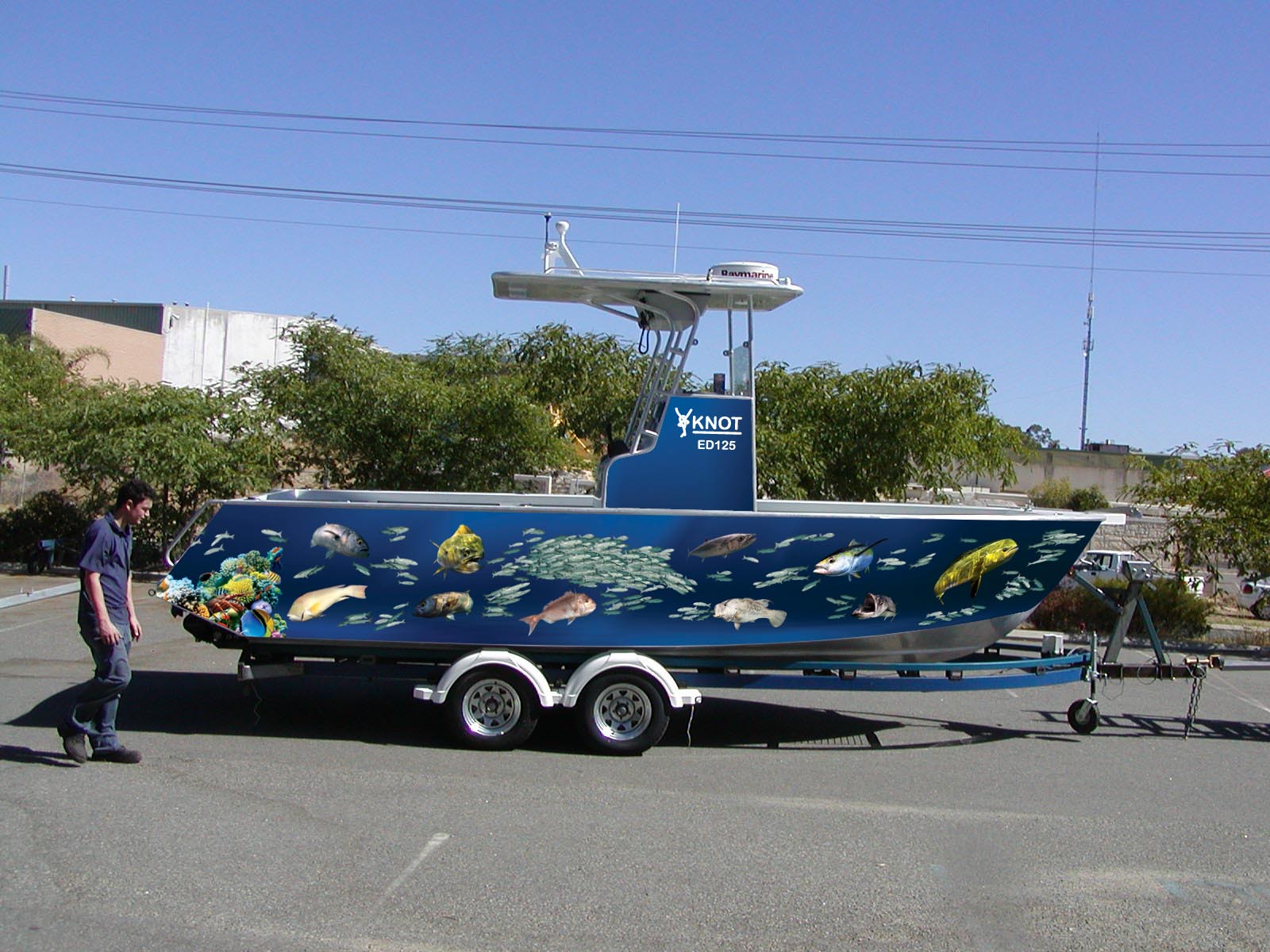 Following on from my previous post (http://fishwrecked.com/forum/boat-wrap-part-1-request-member-assistance), the boat wrap project has progressed. The date for installation is still 12 December so the graphic has now been produced and is in “final edit” stage. The boat has been properly prepared and all is ready to go.