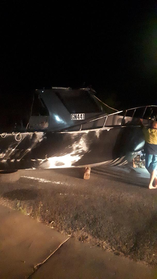 Heard a great bang and scraping out front of son's place in Exmouth. All rushed outside thinking something had collected all our cars parked out front and found a big ally on it's side about 50 metres up the road. They had clipped the kerb gone across the road and hit the kerb again tipping the boat off the trailer and dragging it up the bitumen.