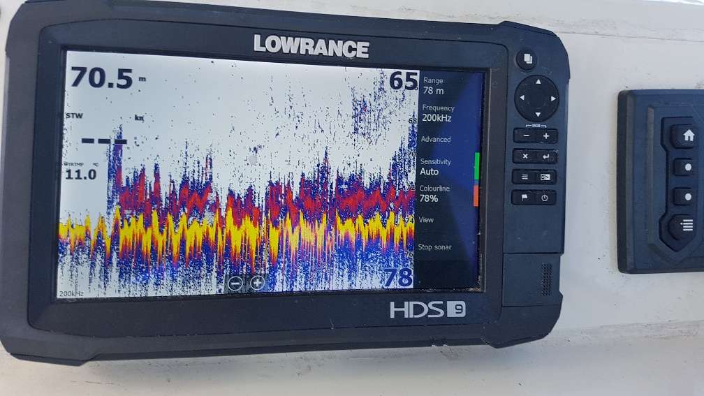 we also dropped the go pro down ona boated rig into anywhere from 60 to 75m of water and the footage is unbelievable. i now have a real understanding of what I am reading on the sounder.