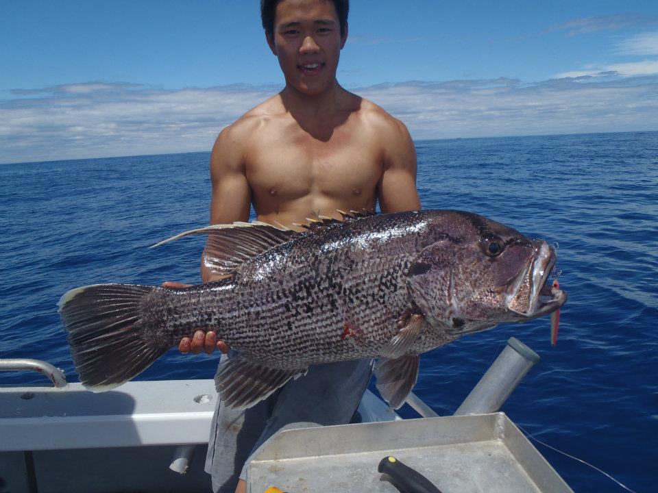 So after a 30 minute drive, we got to our 2nd spot. As i was throwing out the drift anchor, luke was already onto his 1st drop. Before the jig reached the bottom, it got smashed by an est 20kg sambo. After landing his sambo, i dropped straight back down resulting in a similar size sambo. we continued to jigg for sambos for over an hour, Landed about 5 sambos, and lost many more. The next fish i hooked had me guessing, i was jigging at high speeds but the fish felt nothing like a sambo. My suspicions were correct when a nice baldy popped his head up. After the baldy, we focused more on demersal jigging, which resulted in lukey boy catching another larger baldy.