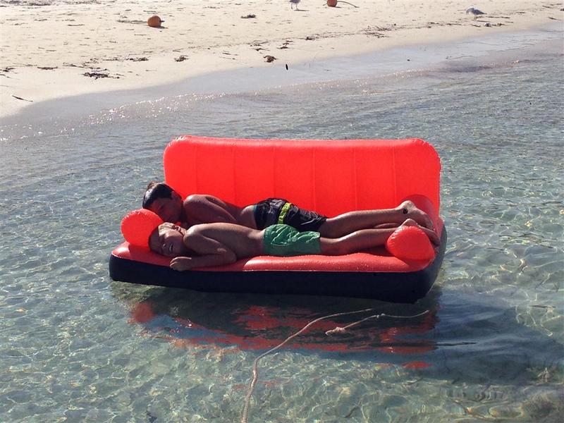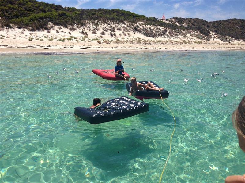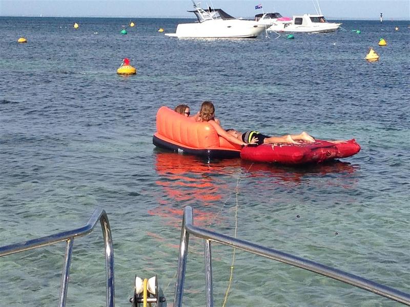 On the way back up river next day, we spotted to of these inflatables blown up on the rocks, middle daughter trooper that she is, jumped over, swam ashore and retrieved them-kids used them non stop at Rotto!