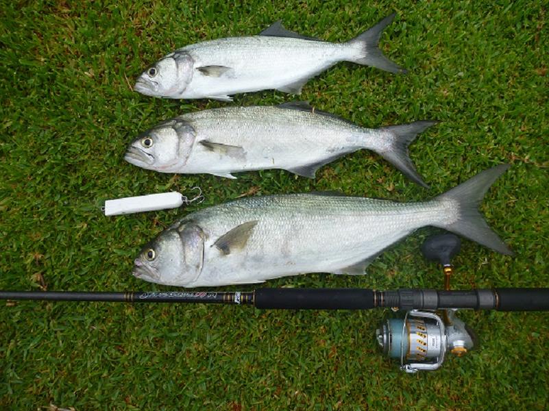 Picked these few tailor up this morning biggest was 57cm.Lost another one slighty bigger at i estimate 60cm in the shore break and watched it slip through my fingers.Also released a smaller tailor.My new stella 5000sw and jigging master shore game was fantastic.Set a balloon out after the tailor session and got bitten off back at my pr knot by what i guess was a mackie...