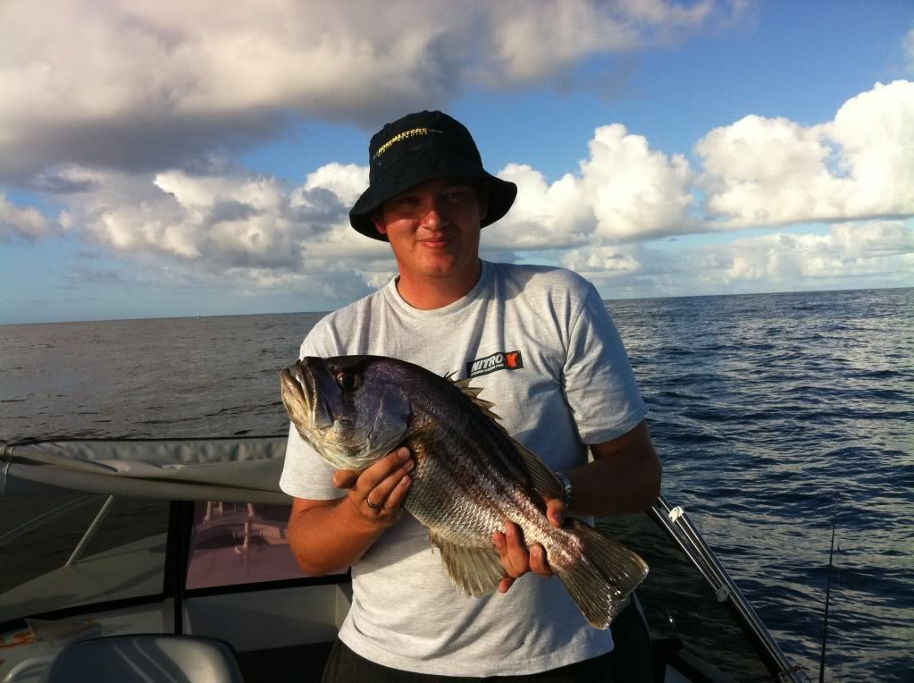 Thought i would put up a post on how we went today out from woodies point. Firstly i would like to thank the guys who replied to my post on sounder pics i put up recently, your comments and advice proved priceless today. We headed out from woodies point boat ramp at 6am and headed for a mark in the 40's that i had marked a couple of days prior but had not much luck on. On the way out to our waypoint i came across some interesting groung in 35m of water so decided to stop and have a few drifts, on the first couple of drifts we picked up a couple of undersize black arse which went back to fight another day. A few drifts later my deckie picked up this nice queen snapper