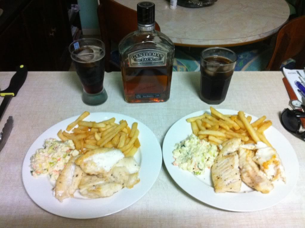 What a great way to end the day, fresh dhufish, chips, coleslaw and some gentlmans jacks to wash it all down! Thanks again for all the help guys, hopefully the fishing gets better from here on in.