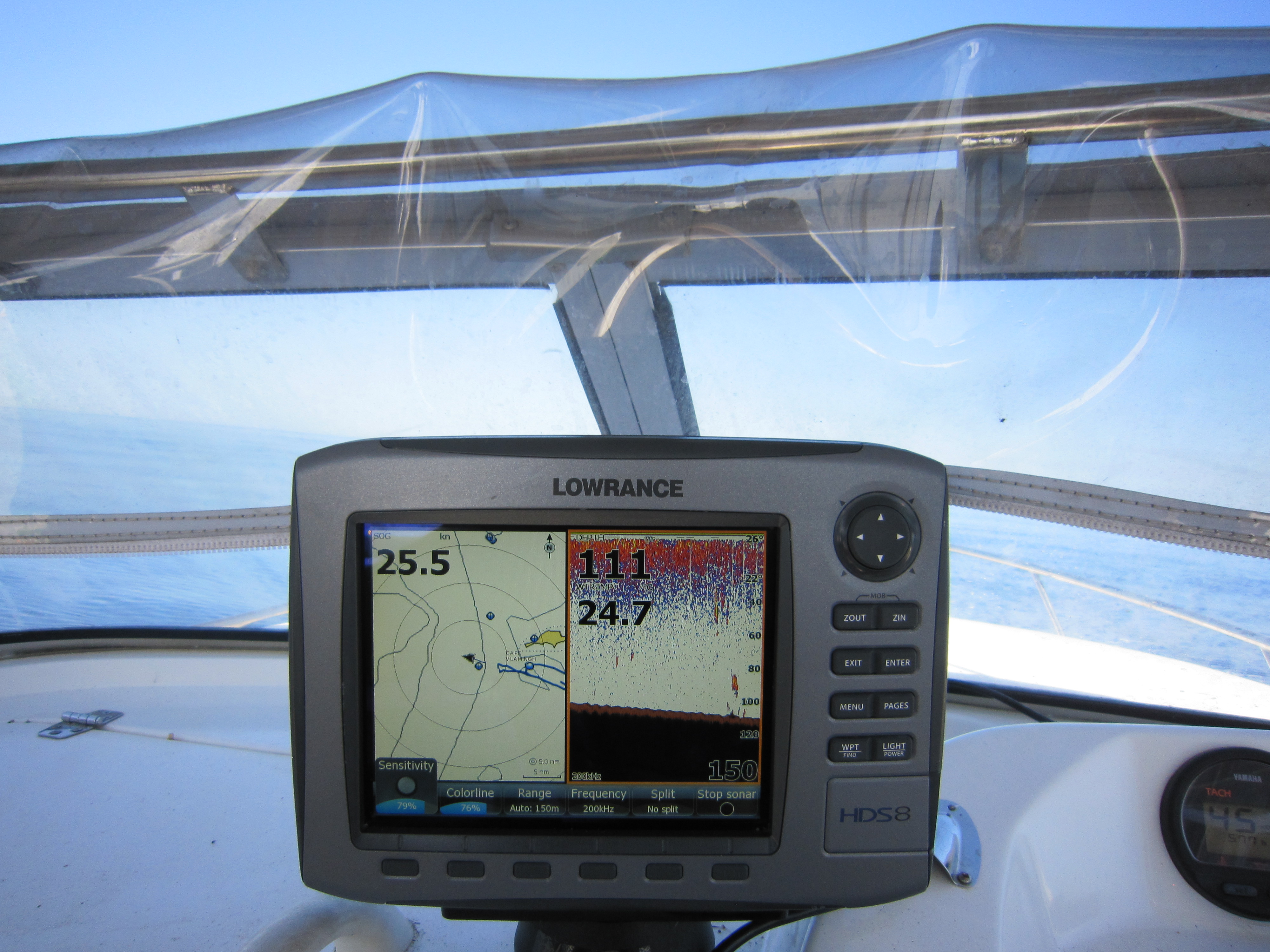 7.30 launch at Cockburn and hit the throttles. First thing that became evident was that we could pick up solid readings at 30 plus knots even if it was only shallow but surprisingly this performance did not seem to fall away as we held speeds at 25 knots or more all the way to the deep.