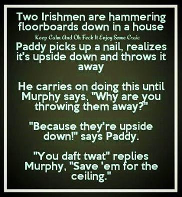 A really nasty 2 handed battle axe.Then a pair of hands.I am in the building trade and I have to use the Irish nail joke within 6 months on someone