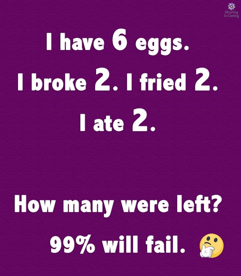 Arrrh I think the answer is 6 eggs and the confessional joke is a ripper, the ladder depiction shows a lot of ingenuity.