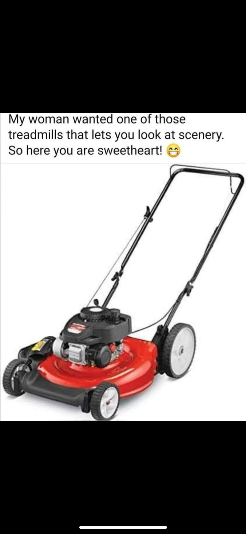 I think I would get shot if I bought a mower for Sandy instead of a tread mill