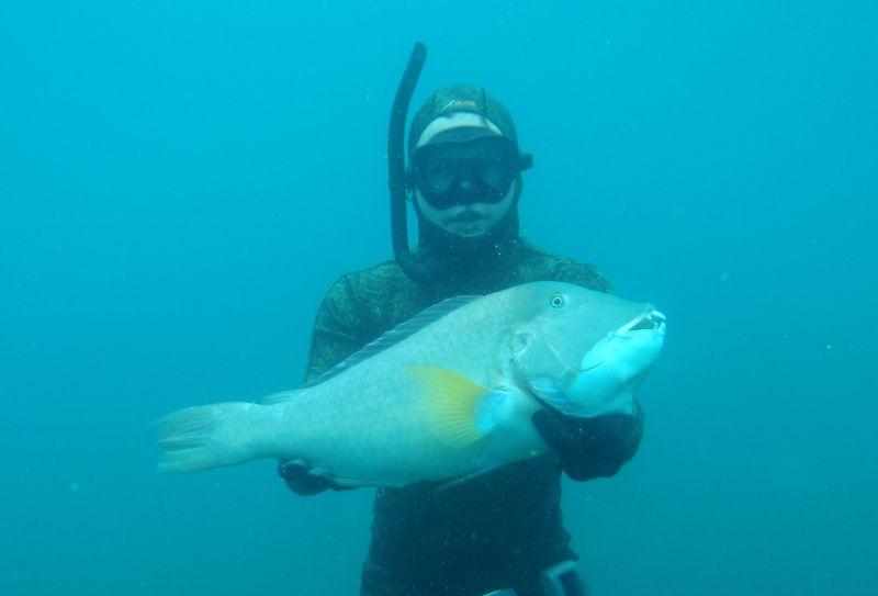 Timmy mean while had knocked off a big Blue Bar Parrot on his swim back to the boat and he had his 2 fish limit on the first dive!