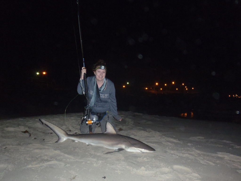 So I told her to meet me and a mate down at my most productive spot. Had been there a bit over an hour when my herring got smashed. I grabbed the rod, set the drag and passed the rod over to her, she did a great job after a fairly decent run and started gaining line back. Only had to take the rod from her during some of the more challenging climbs across the rocks and wasnt long till she landed her first metro shark. Not too bad a size at that.