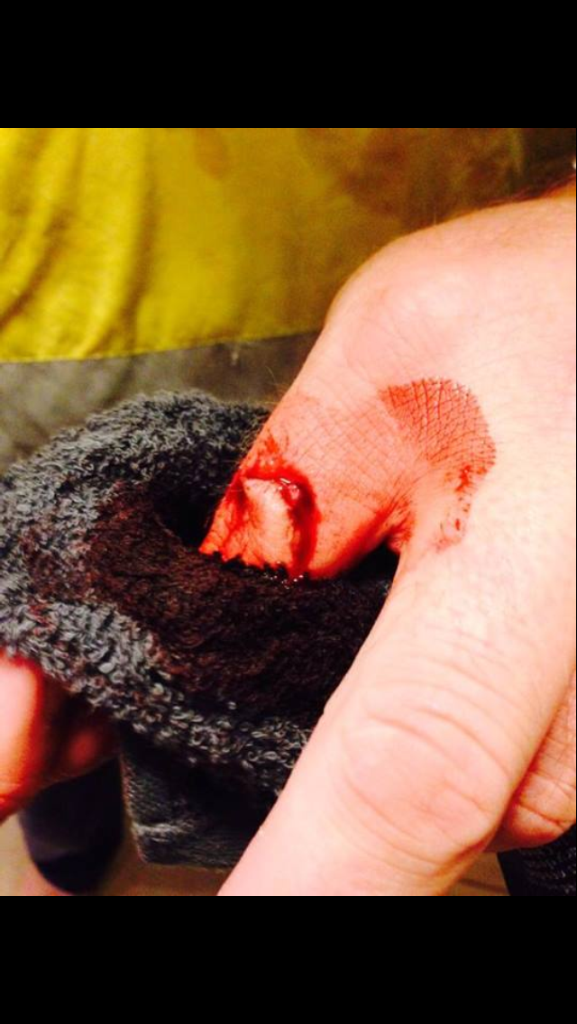 After a glancing blow I took a good chunk out of my finger knicking a tendon. If your a bit squeamish don't scroll down...