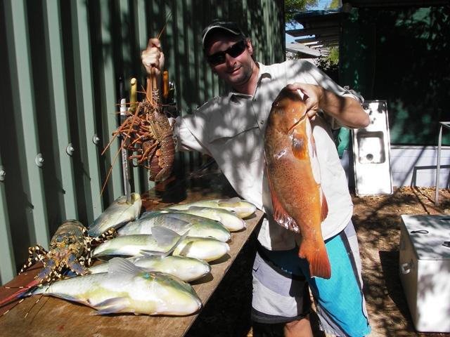 That coral that you and I looked at and didnt dive Bec and I found some nice blueys there saturday arvo. One became dinner anchored up in the shallows sat night and the frame got hung on a rope out the back and kept Bec amused for hours playing tug-a-war with the little whalers before bed . Didnt find any more red crays but some really good looking ground that will get a return trip very soon I think.