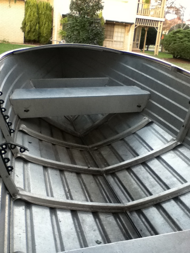 Not a bad effort and some good thinking! just thinking though, as the bars you have installed are steel, and the tinnie is aluminium, unless you want to chage to some ally bars, might be worth considering putting some rubber between the two types of material to reduce the risk of galvanic corrosion and eventually a leak - and maybe some cold gal where you did the cut as well.
