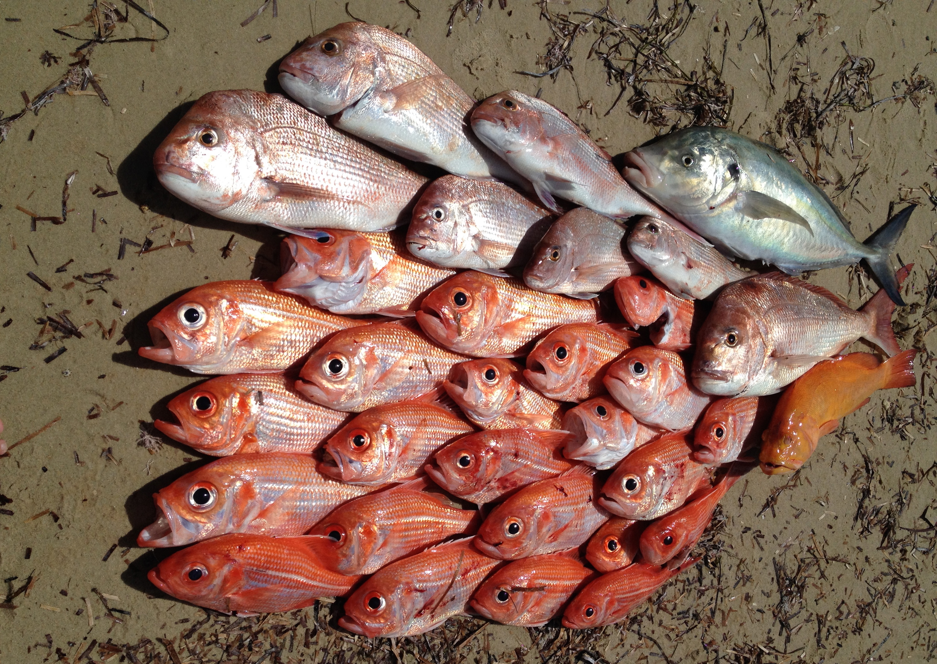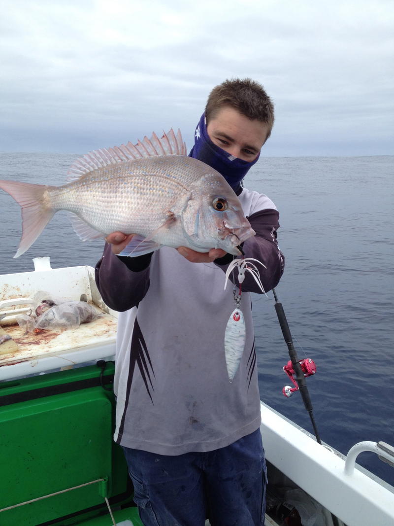 with arms and backs sore it was off to fill the esky with demersals. found another 3 patches of sambos and managed to find a school of pinkys and another school of nannys hanging behind the sambos so we picked up our bag of nannys and 7 pinkys in about half an hour or so.