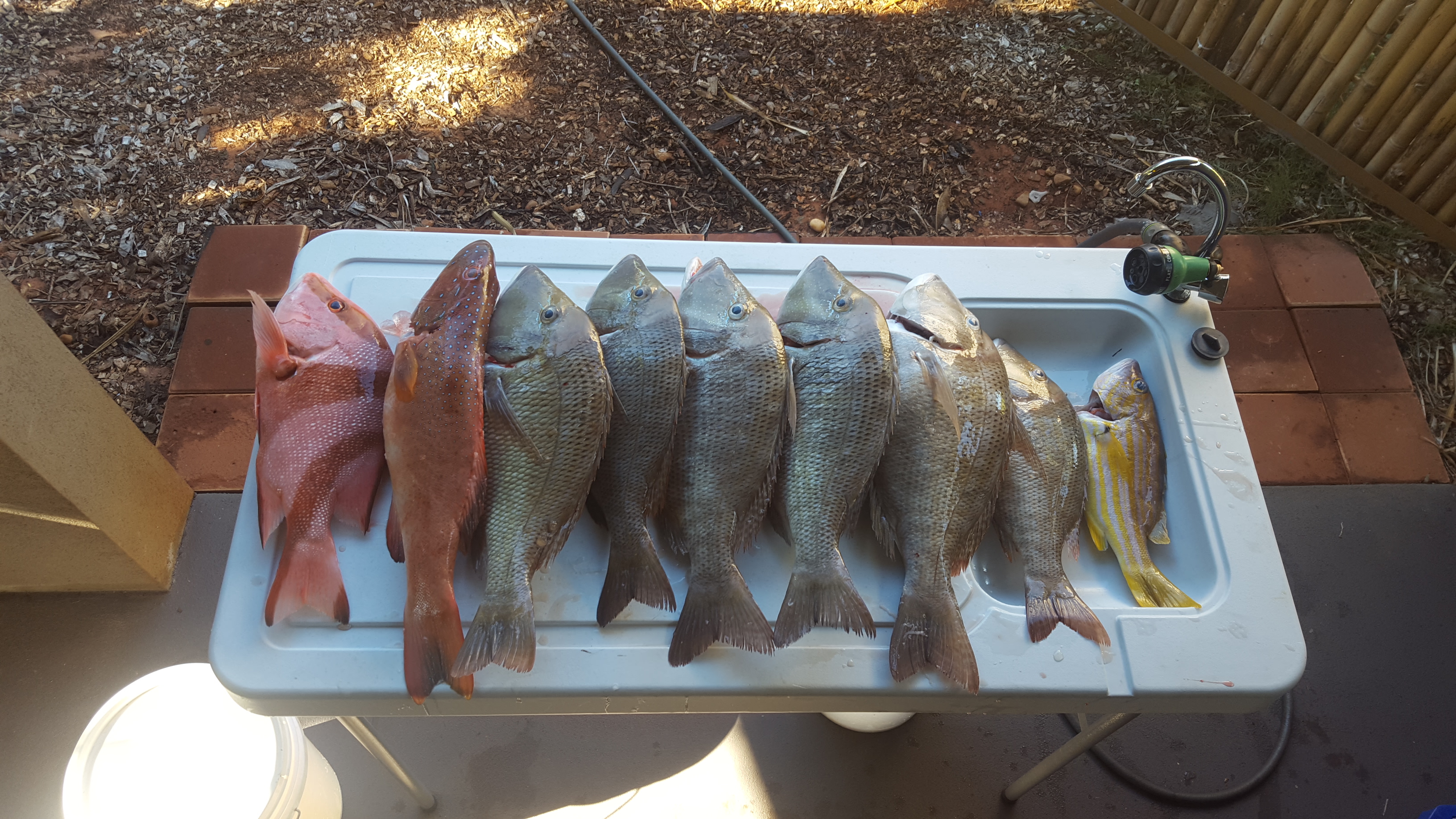 Just got back from my 3 week swing from Cone bay and got the chance to fish with someone from the fishing club I am in. HARD to find deckies midweek for a fish. Fish were slow to come onto the chew to start with but as that sun got lower to the water and the tids turned fish started coming into the boat. Landed the first trout for his boat and the first just legal red emperor. Got a good bag of decent blueline too.