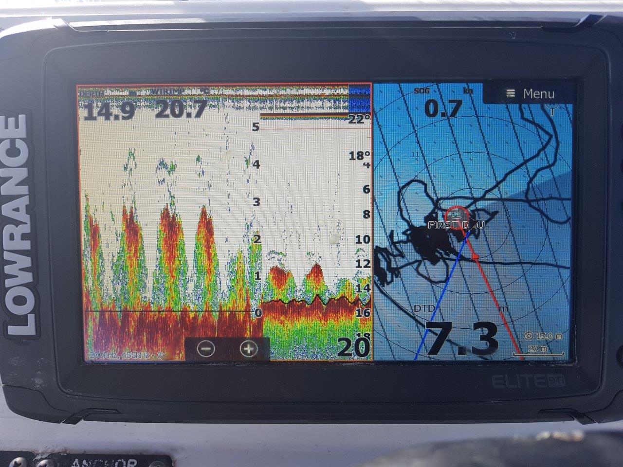 Did OK on the fish my local mate put us onto some good areas and I think I am starting to understand my new sounder a lot better to see what I am over even managed to hover over a likey looking spot and another mate had a good snapper onboard within almost a minute, have includes a couple of sounder (Elite 9Ti) pics below and still no expert but we pulled good fish off these spots any feedback on them good or bad is appreciated we fished mainly within 500m of the coast due to the wind in 10 to 20m and got a good asortment of pinks and baldies and one dhie which was my first size on the boat and even some good bycatch including a first flounder and my biggest flattie by a long shot.