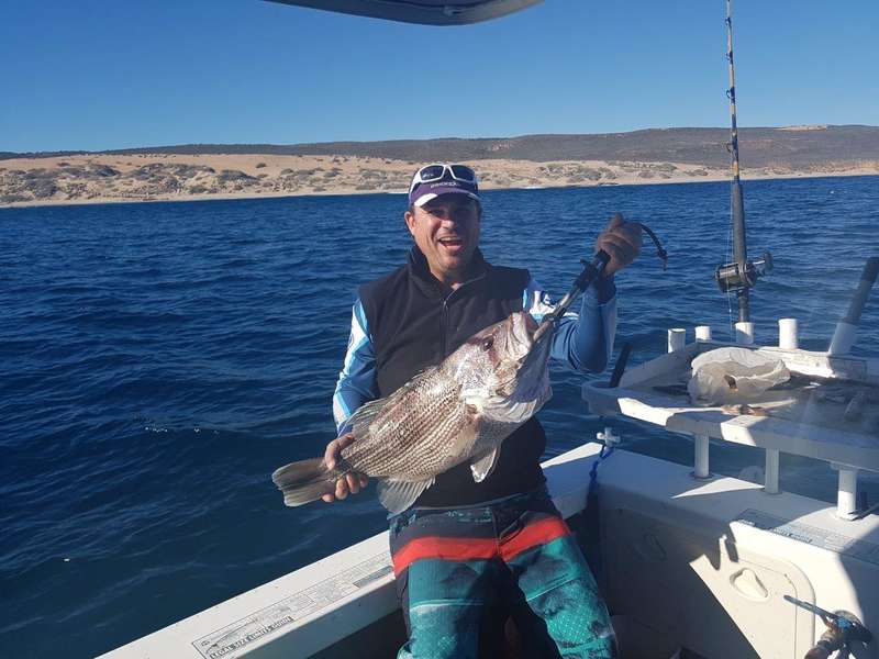Ended up fishing every day mostly between 30 and 50km north of town the weather was not super but winds were mostly NE or NE and even if howling sticking close to the cliffs gave us some protection and were able to motor along nicley the worst day was the first when it unexpectley turned SW and took 3hrs to get back in slop but was made up for with the several pods of whales we got to see doing there thing just awsome. The last day was the best wind wise and even got a bit of glass so went a bit deeper but could not get anything size apart from 1 baldy.
