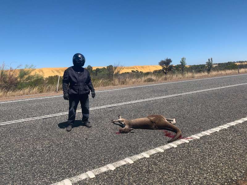 Hit this just south of Cataby while doing 110 on my motorbike, yesterday. My mate following reckoned it did a cartwheel 2 meters off the ground. It hit my left hand and lower leg. So lucky not to step off the bike.