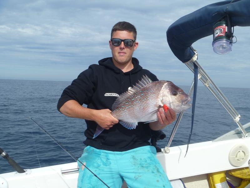 Jamie also got a nice hookup on his softplastic. It run for a bit and and after a couple of minutes we saw some color and it was the the first decend sized Snapper on my boat! And that was the first snapper I have seen been caught on a sp!! One day I gona have to try them as well!