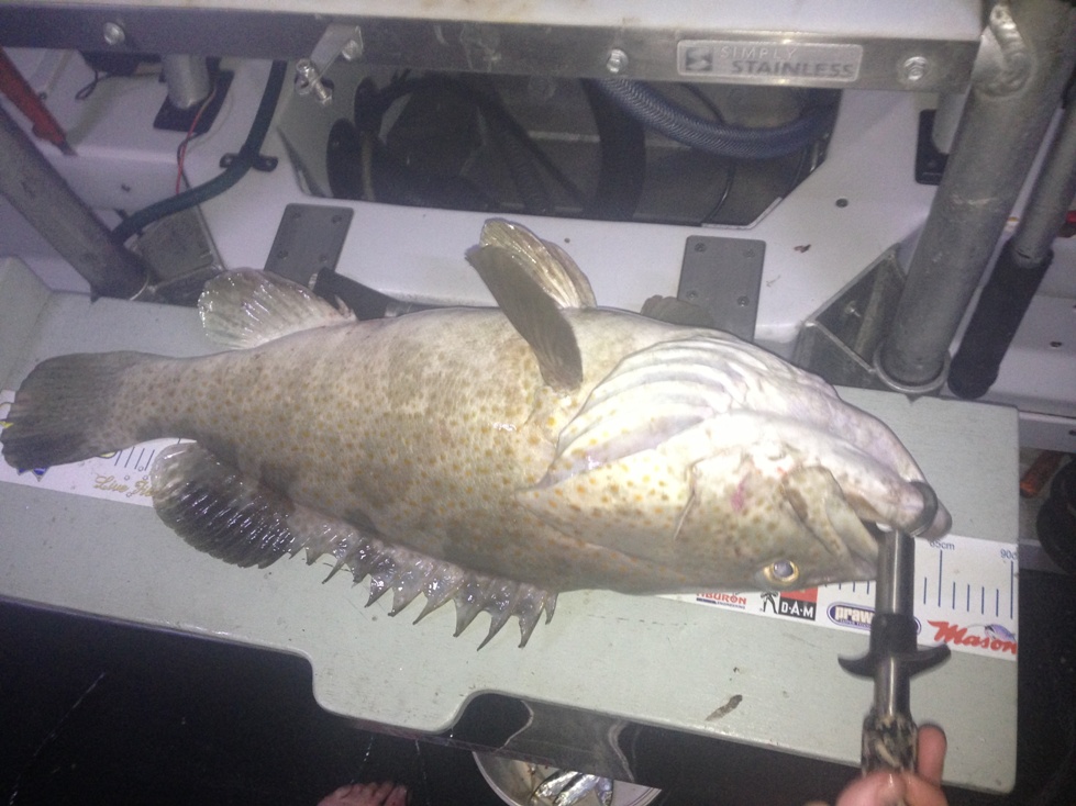 The best day was when three of us bagged out on Fingermark (Golden Snapper) in about 40 minutes. Nothing huge with the biggest going 62 cm. Most fish were in the high 40s and 50s. We probably caught around 50 Fingermark for the day. The same day we hit a school of Bluefin Tuna and managed a few nice fish plus some cool bycatch like a 90 cm plus Grey Mackerel which I forgot to measure and a GT. We also got some nice Grass Sweetlip but the catch of the day for me was a 62 cm Black Spot Tusk Fish. I got him in 10 feet of water and was pretty lucky even with 50lb braid. Another trip involved more Fingermark but not as many. Biggest was 65cm. I managed a solid Spanish Mackerel on a popper which was cool and the boys nailed some Bluefin and Stickbaits and Poppers. Craig got a solid Bluefin probably over 9 kilos on a stickbait. All Tuna were released this day. I also managed a half a metre long Grass Sweetlip.