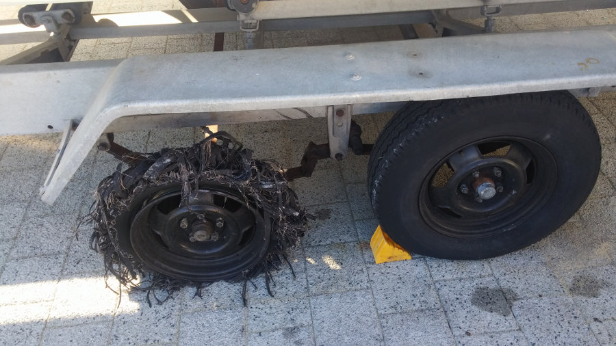 Early morning and headed for the ramp in the dark when 2 k's from home it all went wrong. Trailer felt a bit rough compared to normal so pulled over and saw this. No spare so I limped back home. Yeah I know, a simple spare would have had me underway again if a flash. Replacing all 4 tyres as all the tyres look to be of the same age/brand tomorrow.