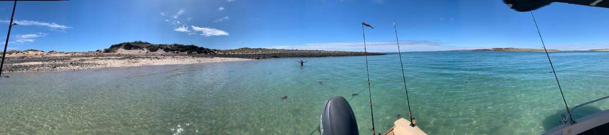 First stop was Pirate's cove for a quick snack and run around for the dog, being her first trip. Trolled some squid jigs behind West Lewis and the water was dirty as the dogs farts given the rain the week before, so expected it to be very hard going catching anything. Gave it a good half an hour and decided to cruise to the back of the next island to do some light tackle popping for queenies and trevs, second cast and the missus is followed in by a hooter squid. Couple of quick casts and we had half a dozen good squid and had probably lost as many with the squadrons being flighty and only being in one small area. Gave it another half an hour and it appeared the black water had scared them off, so up onto the beach for a bbq and swim (freezing if you're a northerner) so was pretty glad the water was too dirty for spearing.
