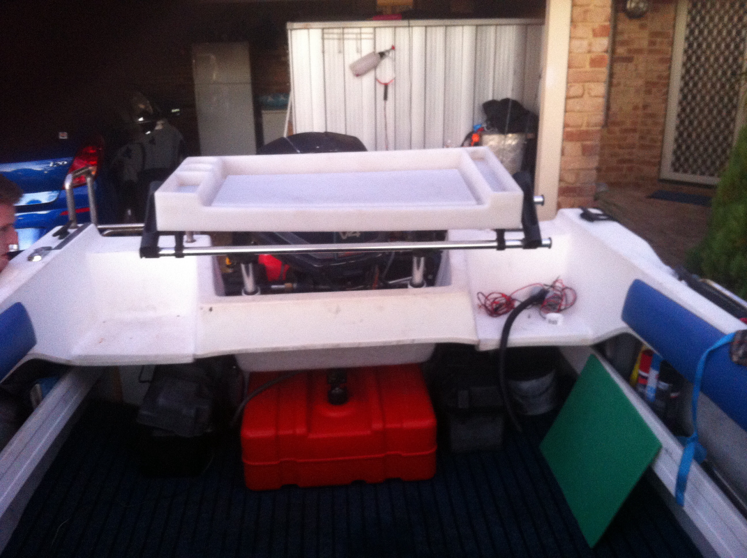 Added a bait board under seat hatches for some storage brand new aerial for 27meg radio just got to sort out the furuno 582l and I think I'm almost done every thing for now time to get out now and find some more spots to fish