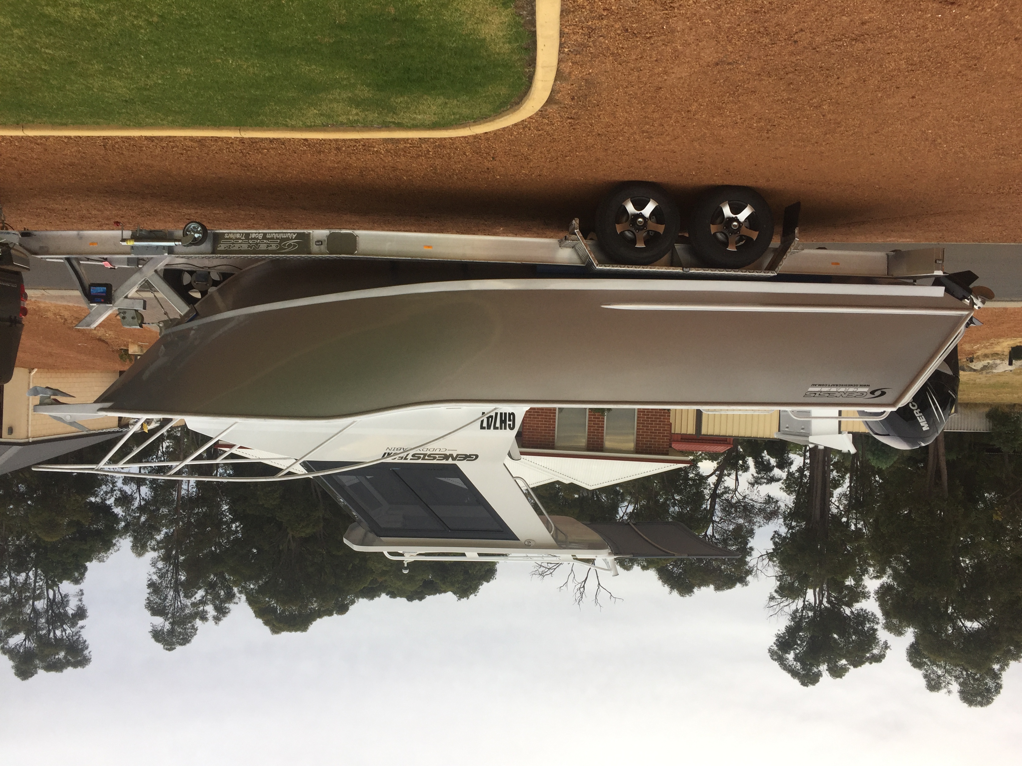 Its been a long 5 months but totally worth the wait for my new rig to be built. Stoked with the final product. Definite plug for Matt and the team at Genesis. Those boys are alltime with there work there. 7.5m cuddy cab Fitted out with 300 ponies, furuno 295 custom fairings for trannys, recessed tabs and all the trimmings. Next level weapon, now time to get some blood on her.