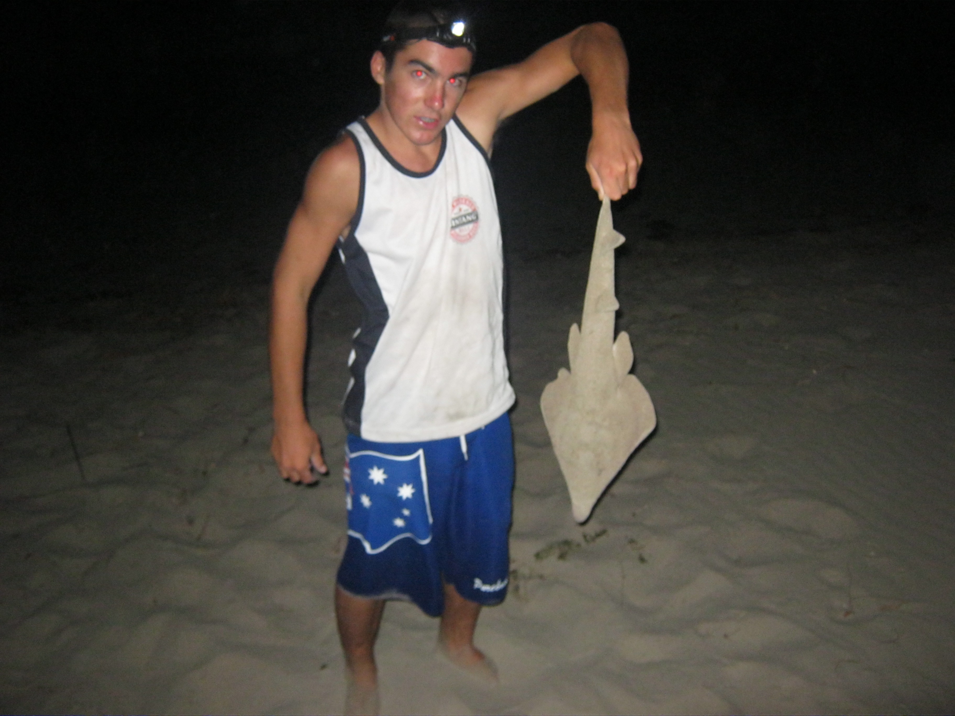 Anyway this is at a beach just north of Sunset Beach in Geraldton. It used to be a nude beach, but i can't really remember where the name 'Pedoz' came from, Its just what my mates and i call it. Its actually the first time i've ever fished this beach. I was using a 14ft Gladiator surf rod with a Penn 850ss reel, using pilchards and herring fillets for bait. We ended up getting 7 tailor, a small shovelnose, a few small mulloway (around 40-60cm) and what i think is a threadfin salmon (perhaps you can tell me for sure??) The two bigger tailor were 54 and 55cm and the others around 40cm.