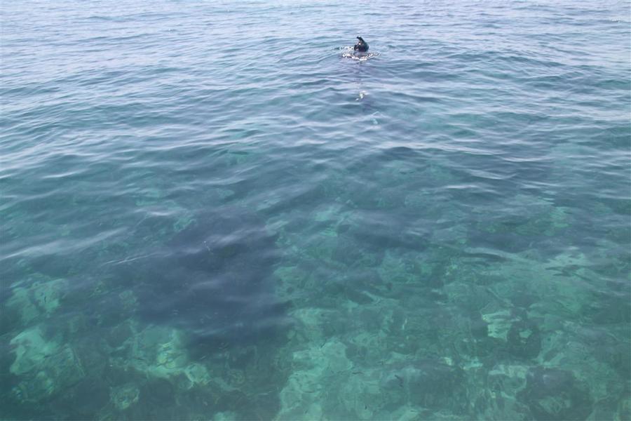 A guy spearing in crystal clear waters at the Montes. :)