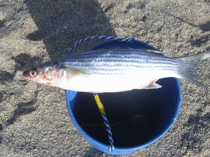Second day ventured to try catch some monster Bronze Whalers out at Wolves Cliffs, Macassar. Had massive baits out on slides, bonito.s / whole monster mullets (see pic) / mac's / monster squids and no bite. That was untill a buddy of ours arrived at 5pm and he hooked into a monster that bit off his 250lb hook trace 50mt of the beach.